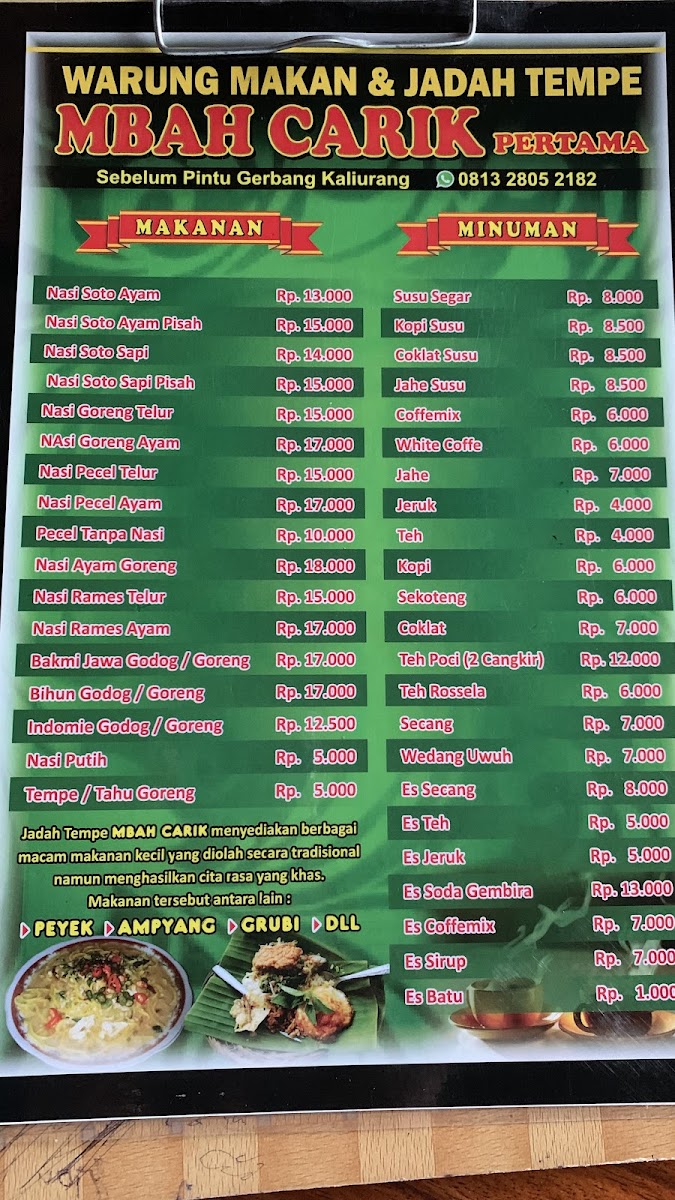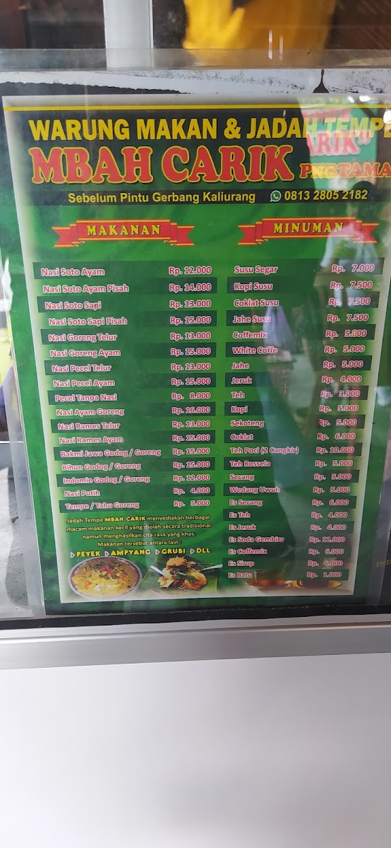 Welcome to Warung Jadah Tempe Mbah Carik Kaliurang, a gem located in the heart of Sleman, Yogyakarta. Known for its iconic dish, jadah, this eatery impresses with its soft and flavorful rice cakes that pair perfectly with their sweet and tender tempeh and tofu. Visitors rave about the generous portions, making each bite a delightful experience.